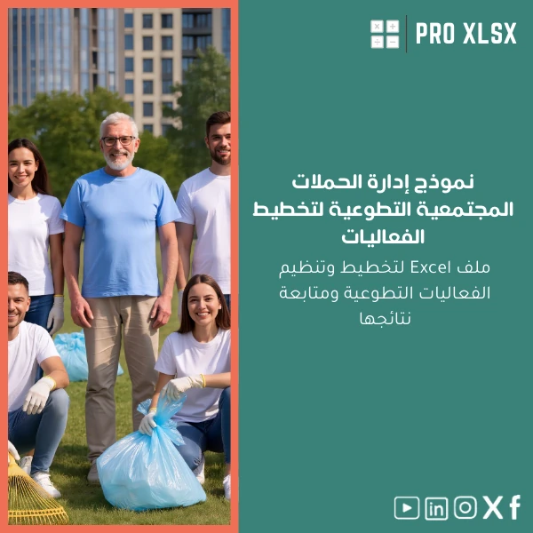 احصل الآن على نموذج إدارة الحملات المجتمعية التطوعية لتسريع التخطيط وتحسين دقة التقارير وتوفير وقت فرقك المحاسبية والتحليلية. شراء القالب يوفّر لك قاعدة جاهزة يمكن تخصيصها أو توسيعها بخدمات ProXlsx بالساعة.