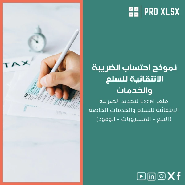 نموذج احتساب الضريبة الانتقائية بصيغة Excel مصمم للمحاسبين ومحللي البيانات والشركات المصرية لحساب ضريبة السلع والخدمات الخاصة (التبغ ـ المشروبات ـ الوقود) بدقة وسرعة، مع إمكانيات تخصيص وأتمتة لتناسب سياسات المؤسسة وتقارير الرقابة الداخلية.