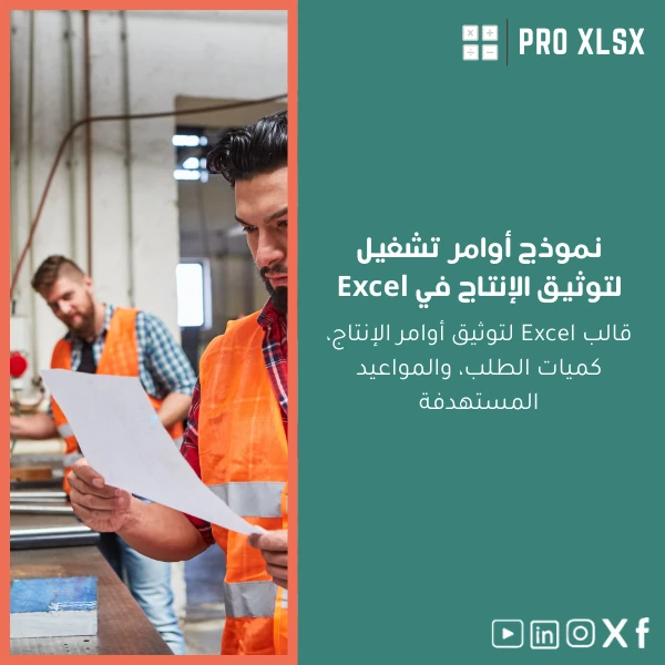 - قالب Excel أقل تكلفة وسريع التنفيذ — مناسب إذا كانت الحاجة لإدارة أوامر التشغيل يومية ولكن بدون بنية بيانات معقدة.
