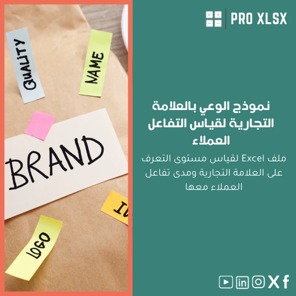 قالب Excel عملي وجاهز لقياس مستوى التعرف على العلامة التجارية وتتبع تفاعل العملاء مع الحملات التسويقية. مصمم خصيصًا للمحاسبين، ومحللي البيانات، والشركات التي تحتاج إلى نموذج قياس الوعي بالعلامة التجارية سريع التطبيق وقابل للتخصيص.