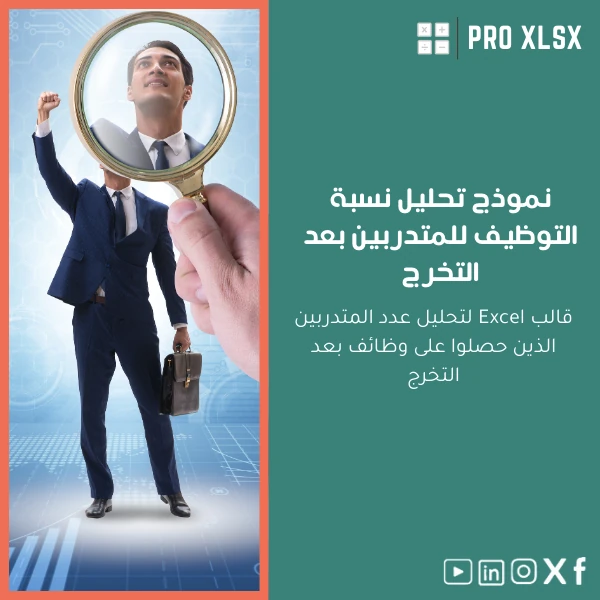 قالب Excel مُصمَّم خصيصًا لقياس وتحليل نسبة التوظيف بعد الانتهاء من برامج التدريب. مناسب للمراكز التدريبية، أقسام الموارد البشرية، والمحاسبين ومحللي البيانات الذين يحتاجون إلى تقارير قابلة للاعتماد بسرعة ودقة منذ 2025-12-02.