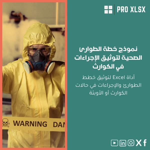 احصل الآن على نموذج خطة الطوارئ الصحية بصيغة Excel لتقليل وقت التحضير وتحسين دقة التقارير المالية والتشغيلية أثناء الأزمات. الشراء يضمن لك ملفًا قابلًا للتعديل، أمثلة تطبيقية، ودعم مبدئي من فريق ProXlsx.