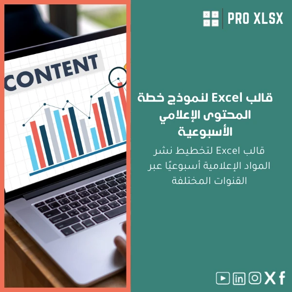 احصل على نموذج خطة المحتوى الإعلامي بصيغة Excel وابدأ تنظيم النشر الأسبوعي وربط النتائج بالتقارير المالية. دعم فني وتخصيص متاح عند الطلب من ProXlsx.