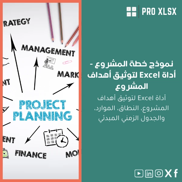- النوع: ملف Excel (.xlsx) — نموذج خطة مشروع جاهز.
