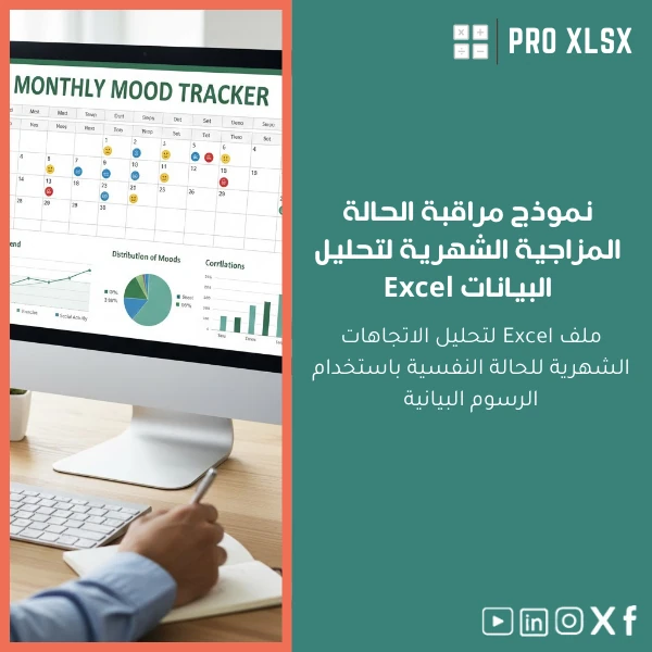 نموذج مراقبة الحالة المزاجية شهريًا بصيغة Excel مصمم لتحويل بيانات المزاج اليومية إلى مؤشرات ورسوم بيانية قابلة للقياس والتحليل. مناسب للمحاسبين، محللي البيانات، والجهات التي تحتاج إلى دمج مؤشرات الحالة النفسية ضمن تقارير الأداء أو مشاريع جودة الحياة.