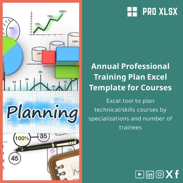 Purchase the Annual professional training plan template and get a professionally structured Excel workbook that reduces planning time, improves budget accuracy and produces management-ready reports. If you need help, ProXlsx offers on-demand hourly services to adapt the file to your exact needs.