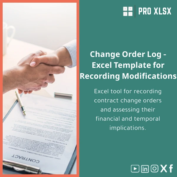 A ready-to-use Excel workbook to record contract change orders, calculate direct and indirect cost impacts, and produce variance reports and dashboards that accountants, data analysts, and project teams can act on immediately.