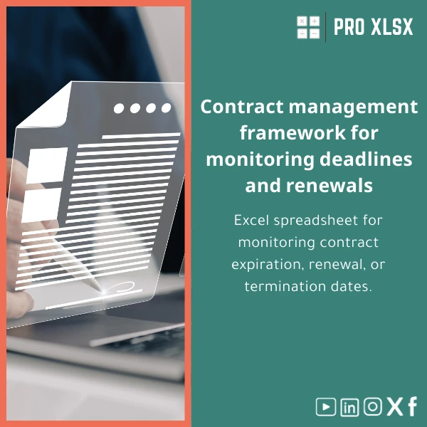 A practical Excel workbook that turns contract data into an actionable contract expiry tracker: automated alerts, consolidated renewals log, and a clean contract management Excel layout so accountants, data analysts, and operational teams never miss a deadline.