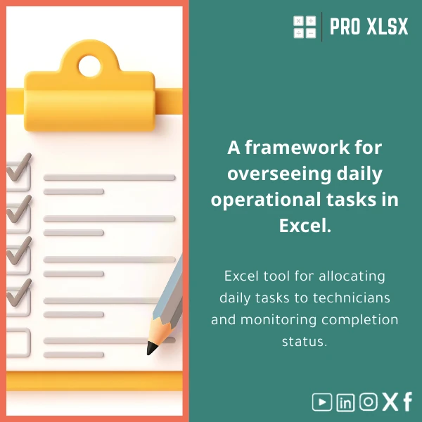 A practical Excel daily operations tasks template that helps supervisors assign, monitor, and report technicians’ daily work — fast to deploy, easy to customize, and built for measurable operational control.