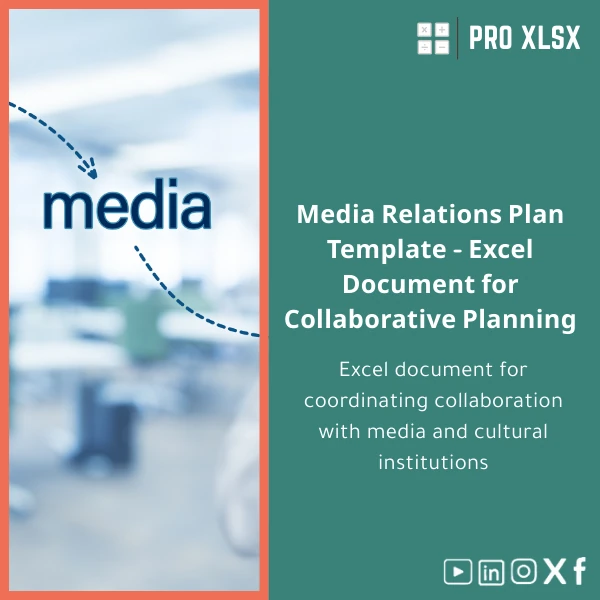 A practical, Excel-based Media Relations Plan Template that helps partnerships, cultural institutions and corporate teams structure outreach, track press coverage, and measure PR outcomes — built for professionals who expect clear data, fast configuration and repeatable reporting.