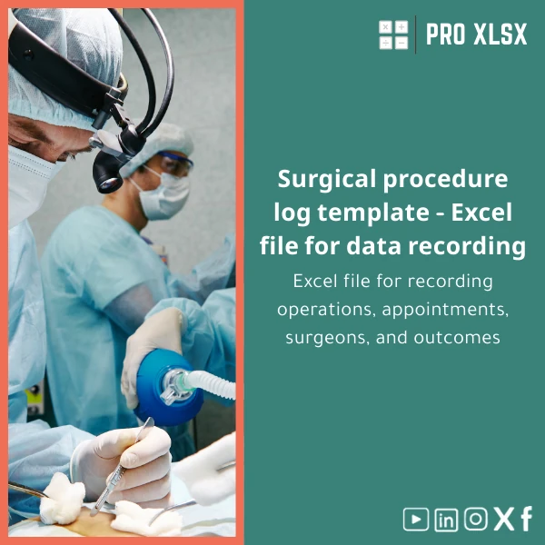 Download a professional surgical operations register that analysts, accountants and theatre teams can trust. If you prefer a tailored setup, buy the base template and add ProXlsx hourly services for fast customization.