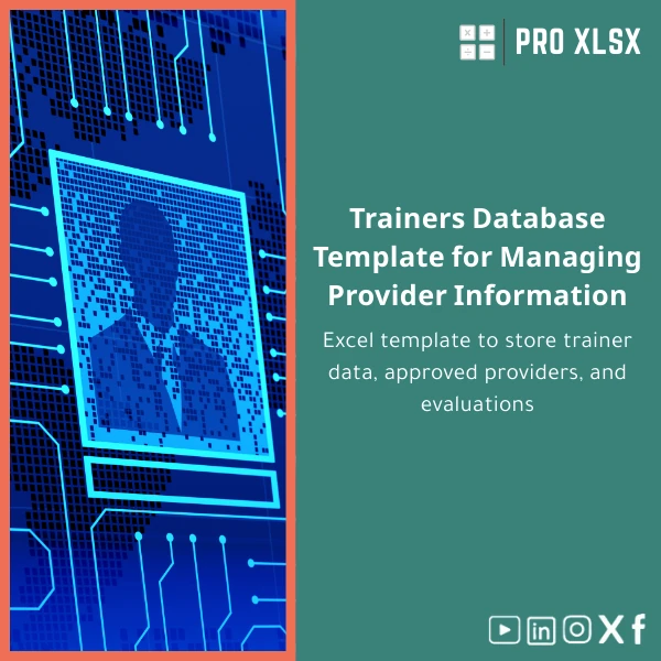 Download the Trainers database template and start organizing your approved training providers, evaluations and contracts in a single, auditable Excel workbook. If you need custom reports or automation, ProXlsx can implement changes quickly on an hourly basis.