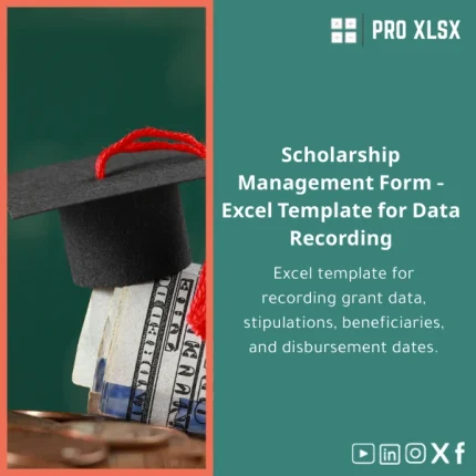 A ready-to-use Scholarships Management Template built in Excel to document scholarships, eligibility rules, beneficiaries, application status and disbursement dates — designed for accountants, data teams and student affairs units that need fast, reliable scholarship tracking without complex systems.